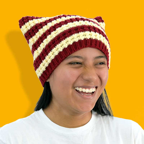 Knitted cat beanies to match any style. The relaxed fit allows you to slouch, cuff, or roll your beanie to the purr-fect fit.